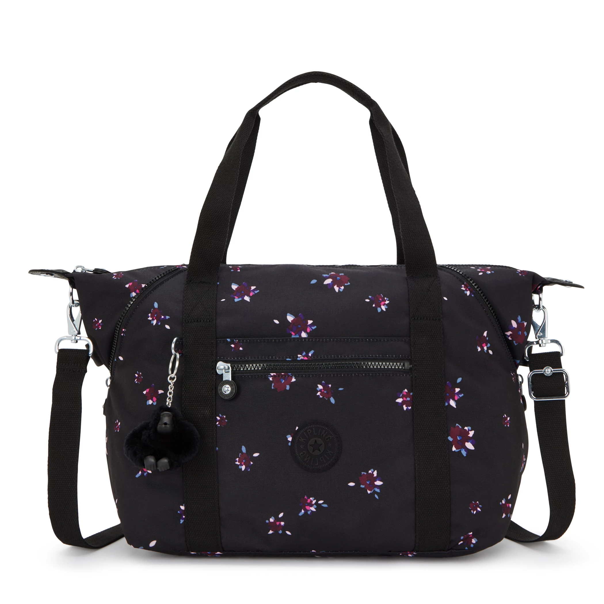 Két kézifogó / levehető, állítható vállpánt / cipzáras rekesz / külső cipzáras és nyitott zseb / oldalain lévő cipzárral és patenttal variálható fazon / belső cipzáras zseb / beépített kulcstartó / egyéb rendezők / plüss majom kulcstartó