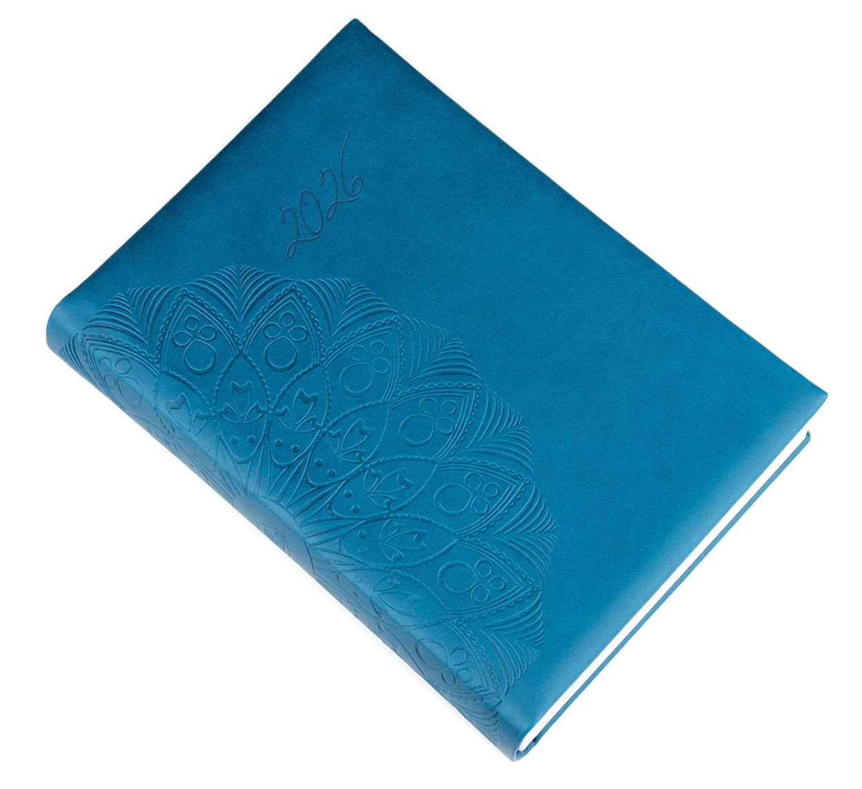Napi beosztású kalendáirum, 400 oldalas. Extrák: jelzőszalag, sarokperforálás.