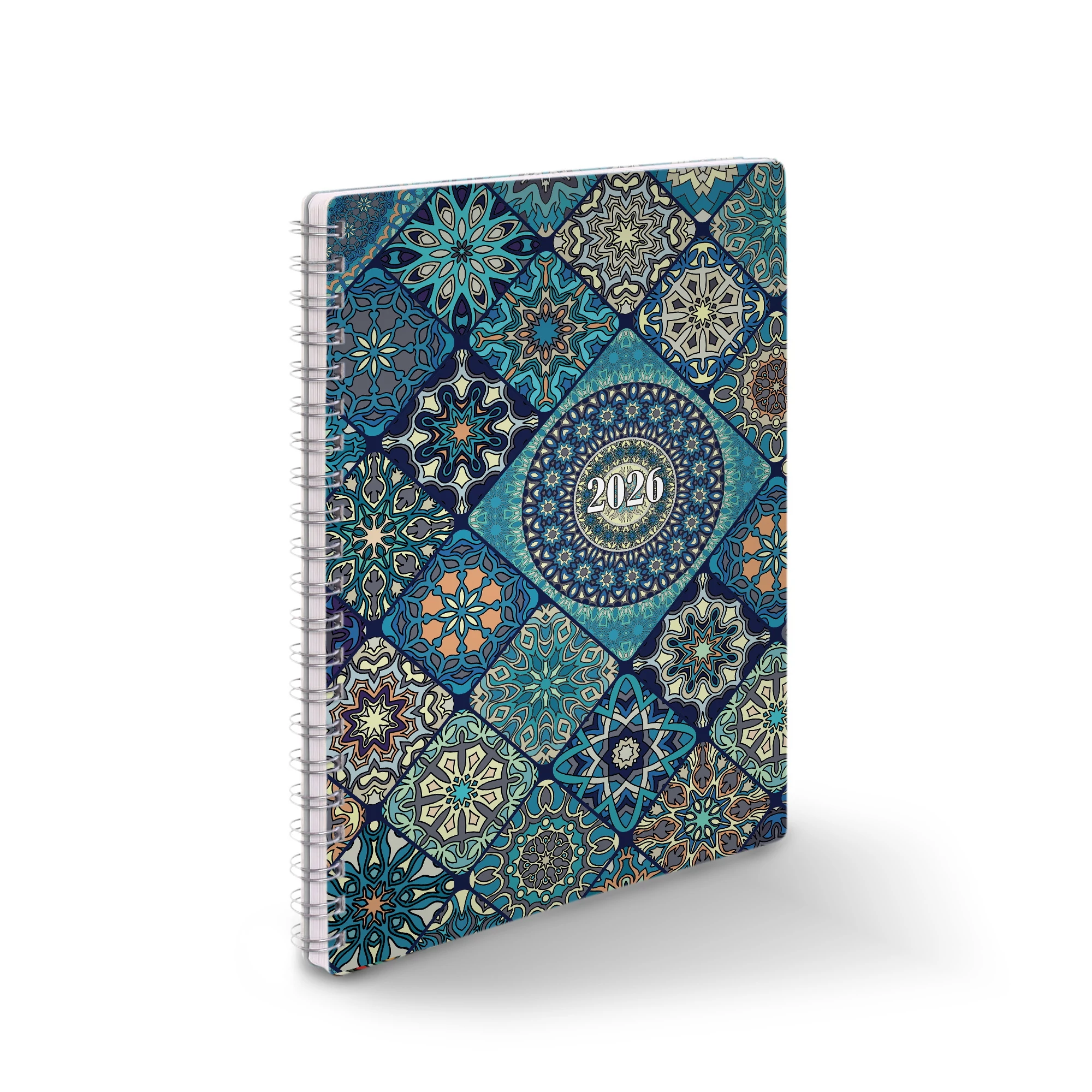Ikerspirállal összefűzött naptár, heti beosztással. 160 oldalas.